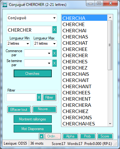 This is an option designed for French lexicons. A similar option may be added for inflexions of words in English but it would not be as nearly useful.To conduct this search use a French lexicon like ODS5 (you won't get much from an English lexicon), and enter a regular verb in the search field. Searching will return all the valid conjugations of that verb. For example, using CHERCHER (French for to search) the list will show 36 words including