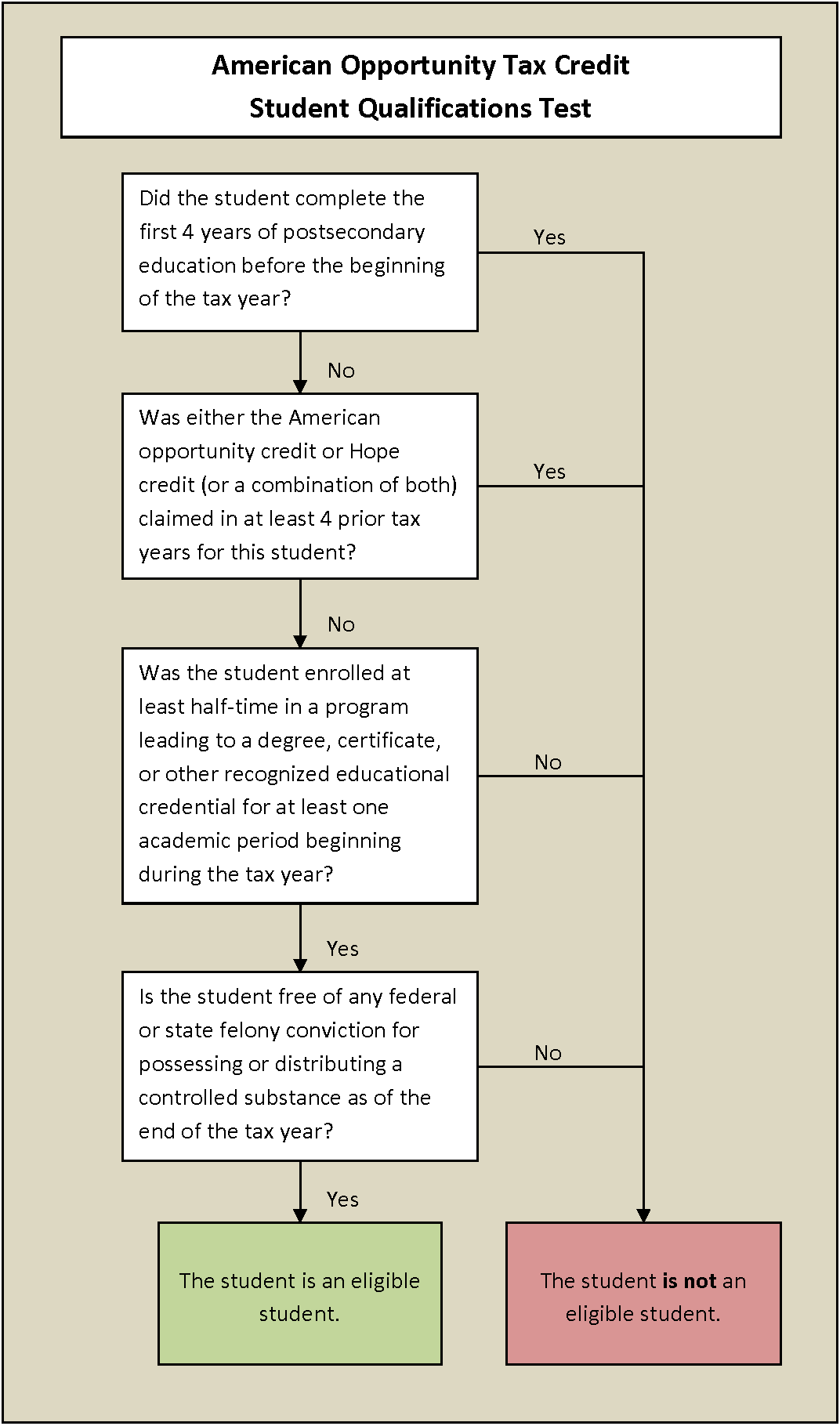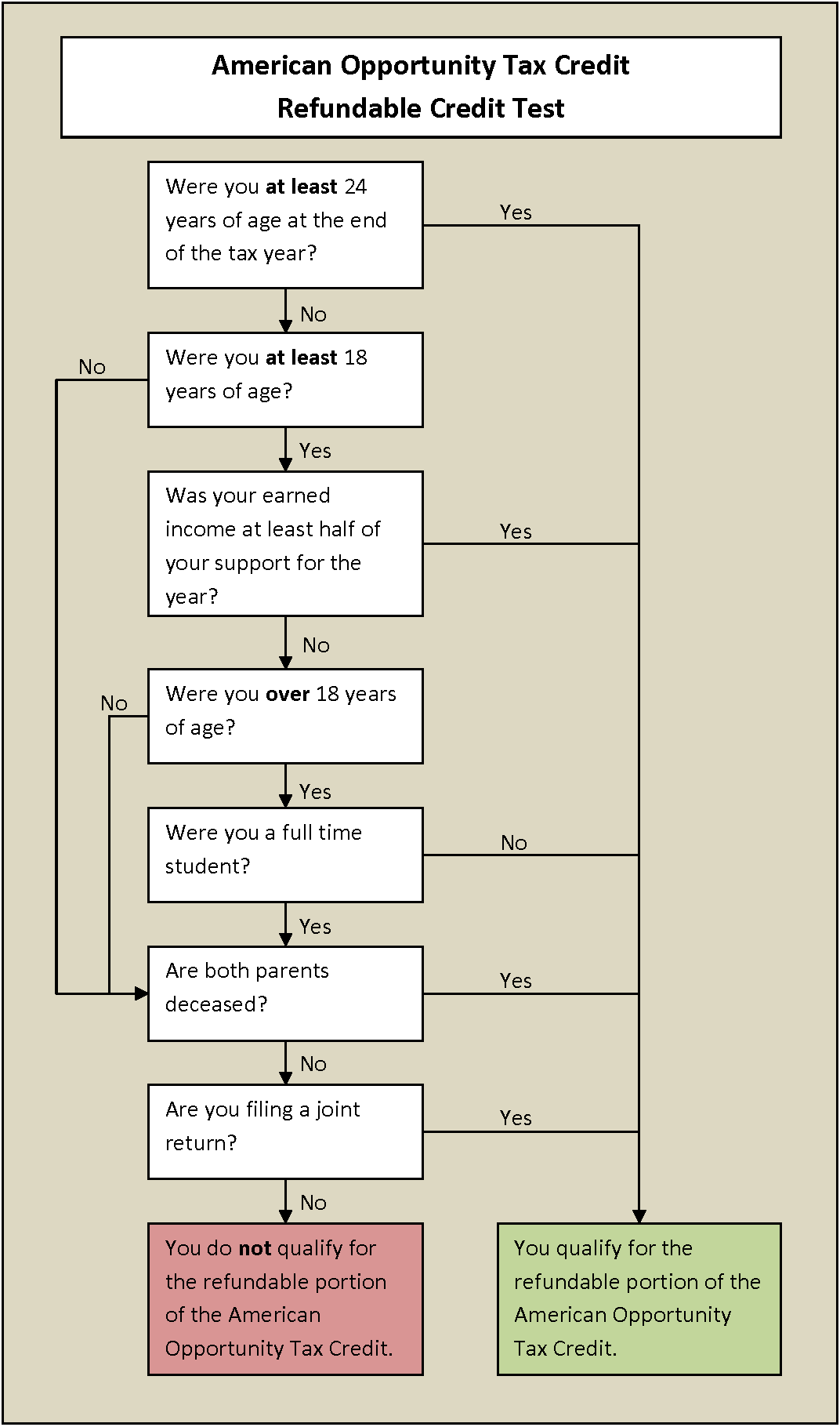 The Refundable Credit Test flowchart can help in evaluating whether the refundable qualifications are met. Publication 970 already has a flowchart to identify eligible students for the AOTC.